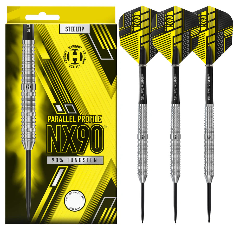 NX90 dartpijlen worden geleverd met Black Supergrip midi shafts, nieuwe 100 micron NX90 flights en zijn match gewogen tot +/- 0,05g.