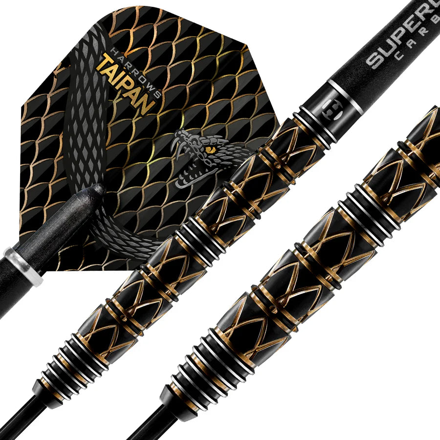Gemaakt van 90% tungsten en met een opvallende zwarte en bronzen titanium-nitride coating, straalt de Taipan klasse en dreiging uit. De gripstructuur is over de hele barrel evenwichtig verdeeld, ideaal voor spelers die een stevige, maar comfortabele grip zoeken.