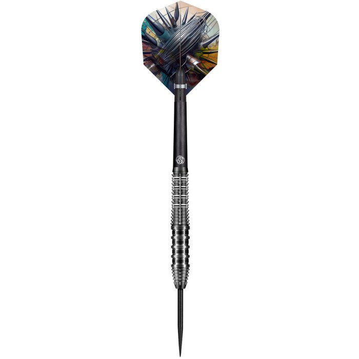 De barrel van de Gnarly Rippah is vervaardigd uit hoogwaardig tungsten, wat resulteert in een slank profiel en een geoptimaliseerd zwaartepunt. De barrel is voorzien van een uniek en complex patroon van diepe groeven en richels, wat een extreem stevige en slipvaste grip biedt. De natuurlijke, onbewerkte tungsten finish benadrukt de brute kracht en functionaliteit van deze darts.