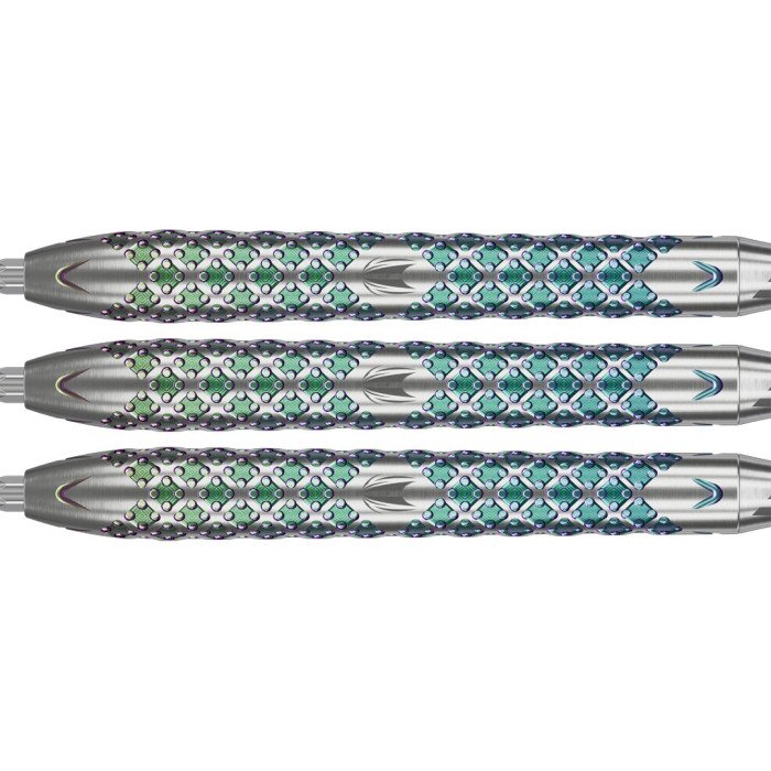 De Target Rove 03 90% darts zijn ontworpen met een geavanceerde gripstructuur die zowel stijl als functionaliteit combineert. De barrels zijn vervaardigd uit 90% tungsten en hebben een taps toelopend ontwerp dat naar de punt toe versmalt. Deze vorm bevordert een voorwaartse grip en een snelle loslating van de dart, wat resulteert in strakkere groepsvorming op het bord. De combinatie van de precisiegefreesde textuur en de DLC-coating biedt een stevige, maar niet overdreven agressieve grip, geschikt voor spelers die op zoek zijn naar zowel controle als comfort.